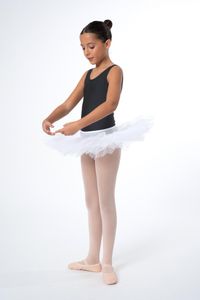 Teller-Tutus mit einem praktischen und funktionalen Design, ideal für Ballettunterricht und Proben. 8 Tülllagen (6 dicke Lagen unten und 2 feine Lagen oben). In weiß und schwarz erhältlich.