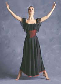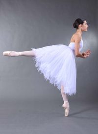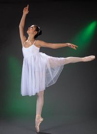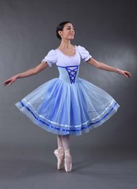 Romantisches Lang-Tutu (vorzugsweise weicher Tüll), vorne professionell gefüttertes Mieder