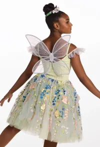 Feenkostüm aus schimmerndem Pailletten-Stoff mit samtigen Blumenapplikationen und Perlenimitat