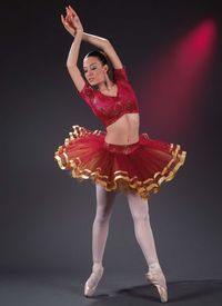 Solo-Tutu, Topping aus bordeauxroter Lux-Samtapplikation veredelt mit einem goldenen Glanz-Band, das mit Strasssteinen angereichert ist