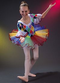 kurzes, klassisches Basic Tutu aus Elasthan, Body mit Prinzess-Nähten, Rockteil mit sechs Lagen Tüll